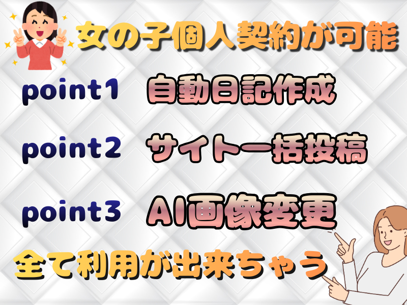 自動日記作成/サイト一括投稿/AI画像変更 が使える。